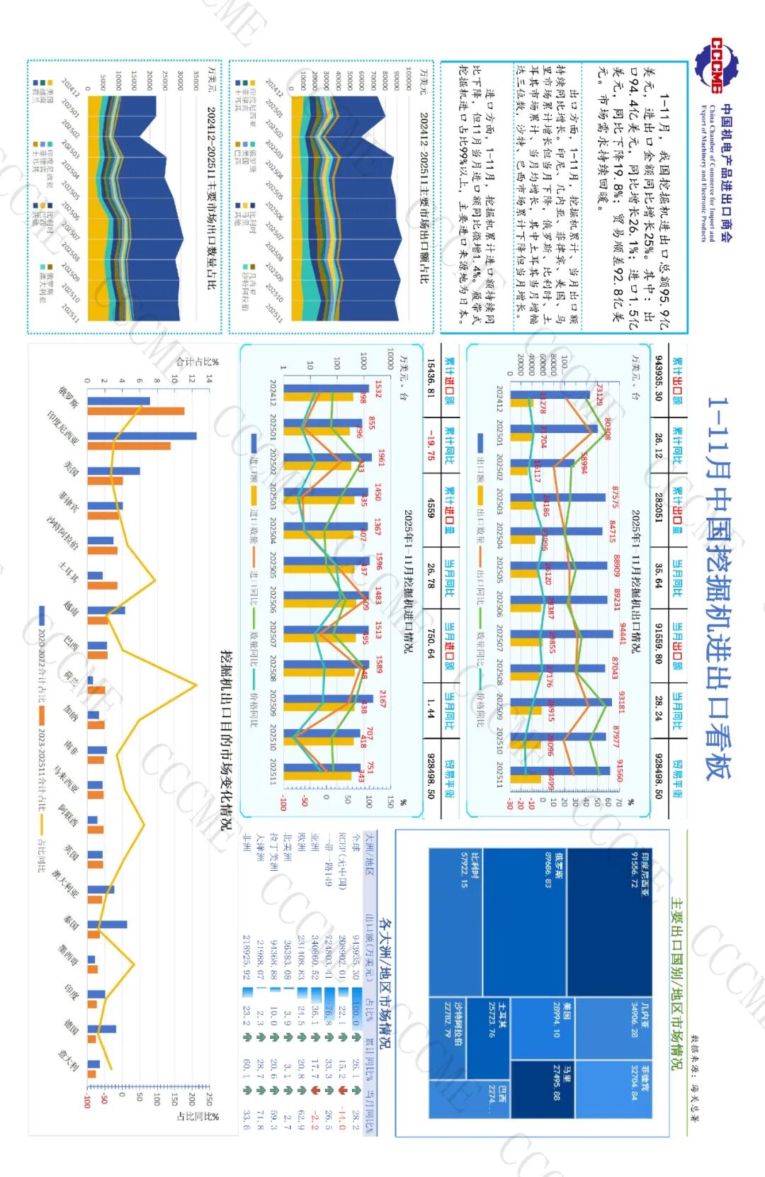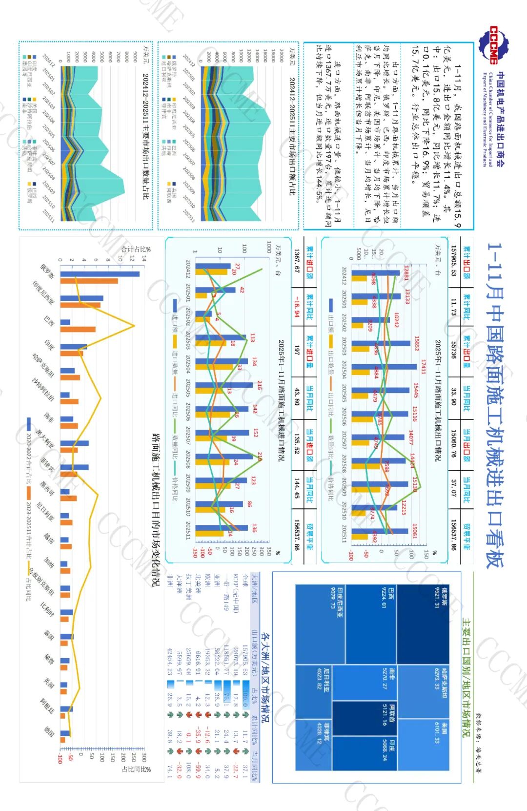 中国工程机械类产品进出口数据看板(2025年1-11月)