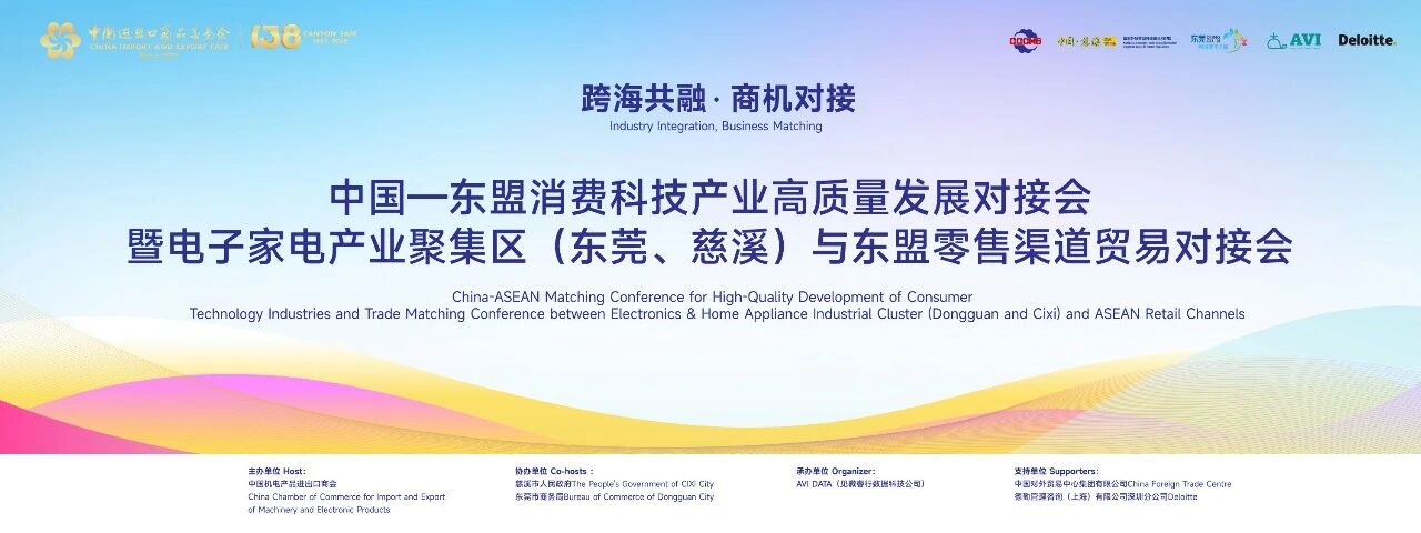 138届广交会活动邀请 | 中国—东盟消费科技产业高质量发展对接会暨电子家电产业聚集区(东莞、慈溪)与东盟零售渠道贸易对接会