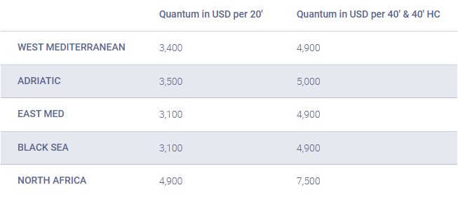 12月3日,达飞同样发布公告宣布上调北欧、地中海和北非FAK费率,最高7500美元/FEU。