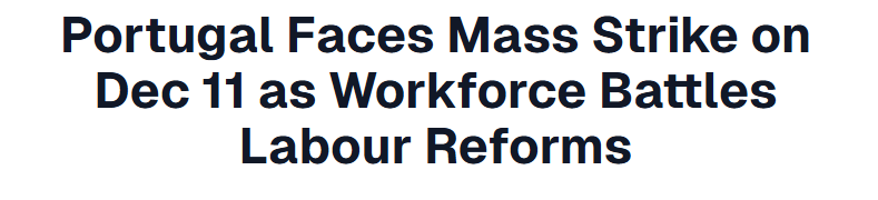 据悉,当地时间12月11日,葡萄牙迎来12年来首次全国总罢工,12月12日,意大利将迎来全国总罢工。