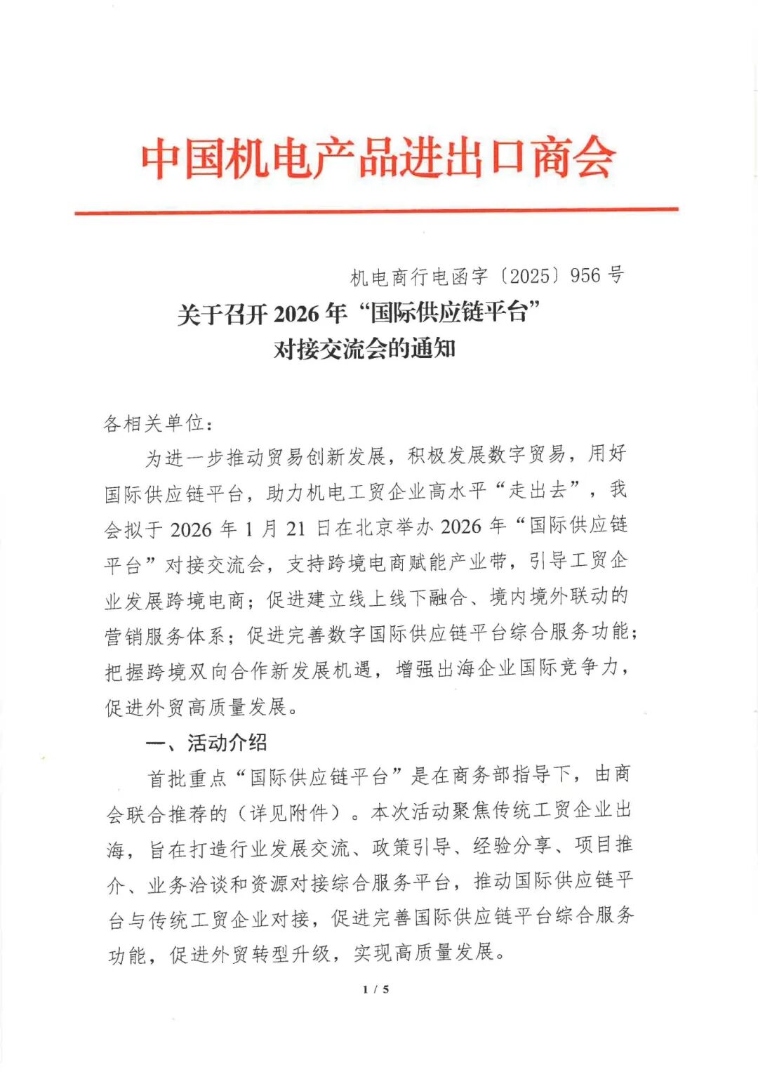 关于召开2026年“国际供应链平台”对接交流会的通知