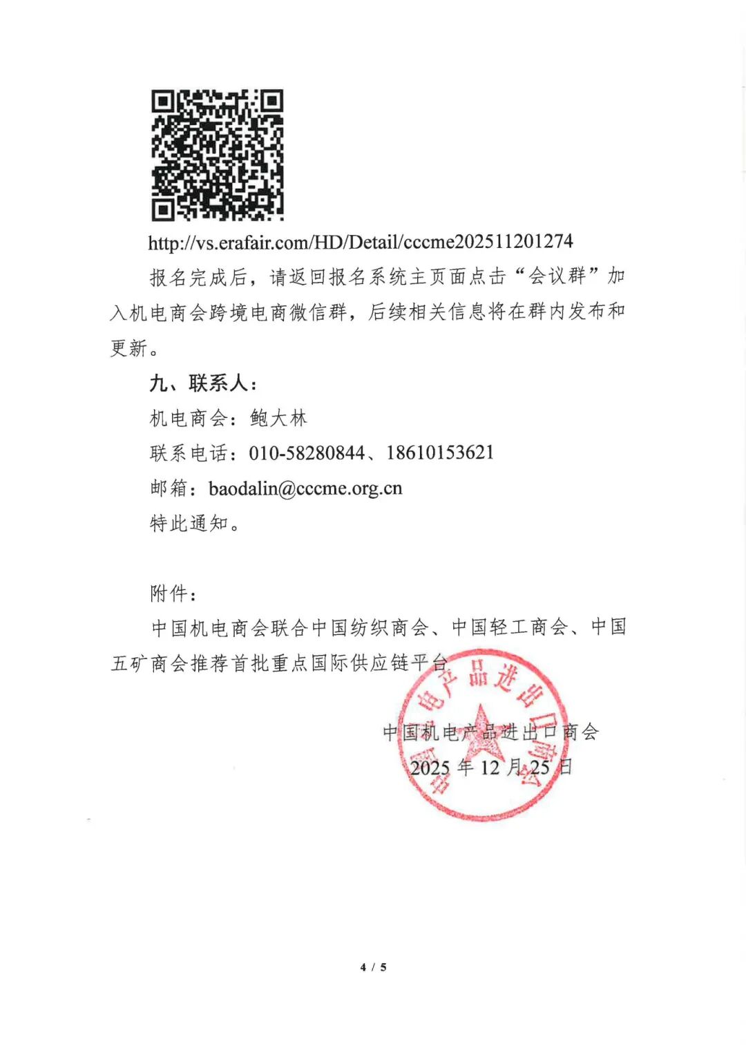 报名完成后,请返回报名系统主页面点击“会议群”加入中国机电商会跨境电商微信群,后续相关信息将在群内发布和更新。