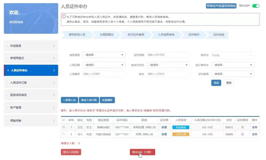 付费成功后,后台会对人员信息进行二次审核,通过后将进入制证环节。企业可随时登录官网查看审核制证进度。
