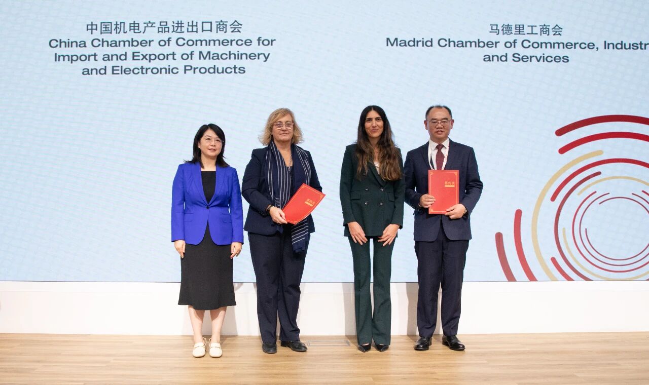 企业对接环节围绕农食产品、绿色经济、先进制造、服务贸易等多个行业分组开展,双方共签署9项贸易、投资合作协议,其中中国机电商会与马德里工商会签署合作备忘录,并在会上交换文本。